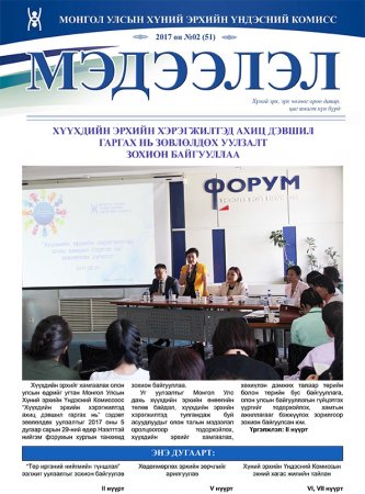 Мэдээллийн хуудас 2017/04 дугаарыг хүлээн авч уншина уу. Мэдээллийн хуудас энд дарж нээх [1.13 Mb]...
